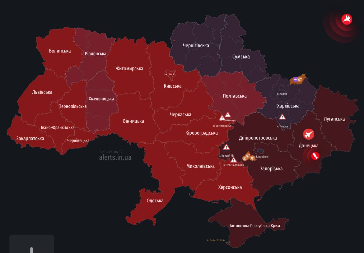 Станом на зараз повітряна тривога оголошена по всій країні: