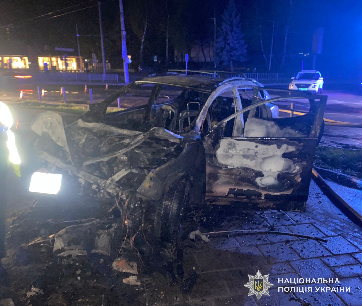 Відомо, що близько 00:35 на перехресті вулиць Княгині Ольги та Володимира Великого водій автомобіля Nissan Rogue Sport, 34-річний житель Львівського району, не впорався з керуванням, виїхав за межі проїзної частини та в’їхав у бетонну стіну. Автомобіль загорівся.