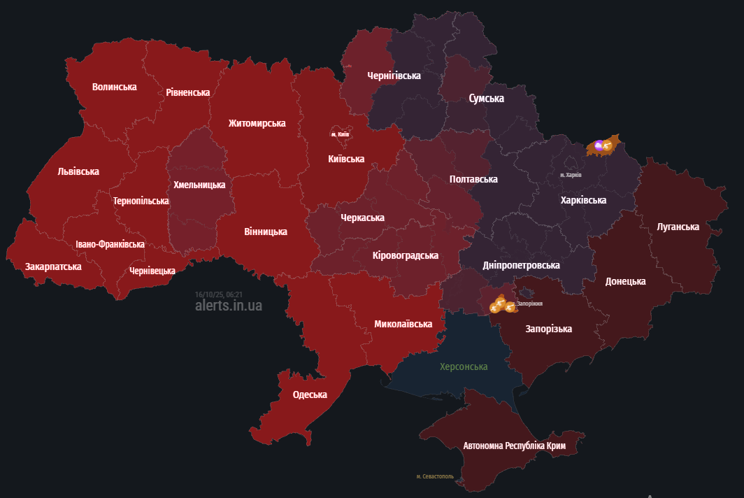 На світанку у четвер, 16 жовтня, ворог випустив швидкісні цілі у напрямку українських міст. Крім цього, росіяни підняли основний носій російського гіперзвукового авіаційного ракетного комплексу Х-47м2 "Кинджал" МіГ-31К. По всій країні оголосили повітряну тривогу.
