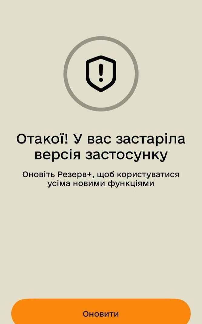 "Отакої! У вас застаріла версія застосунку. Оновіть Резерв+, щоб користуватися усіма новими функціями", — йдеться у повідомленні.