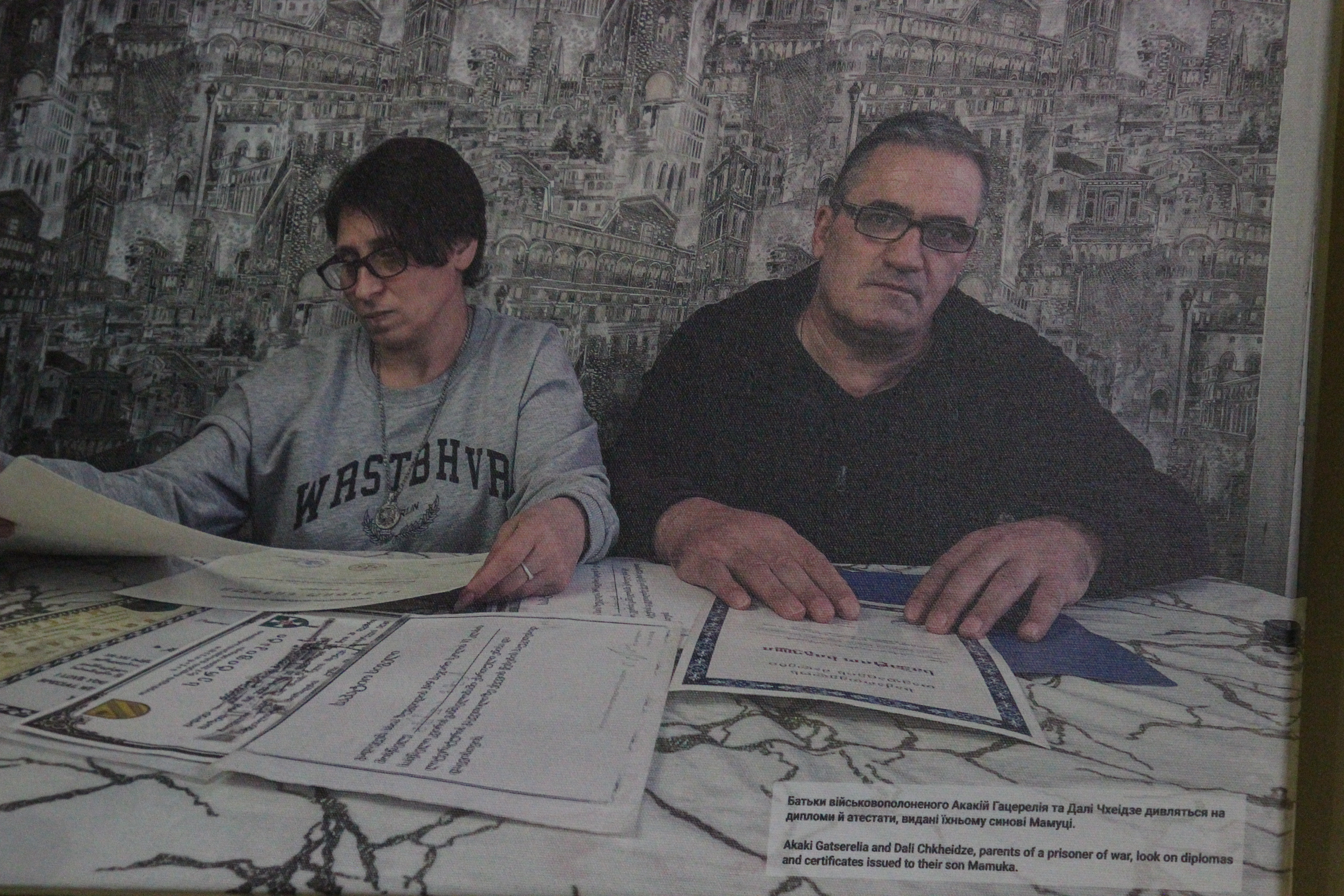 Також представлена історія Мамуки Гацерелія — добровольця з Грузії, який став на захист України і був засуджений російським судом до довічного ув’язнення. Його досі чекають вдома батьки.