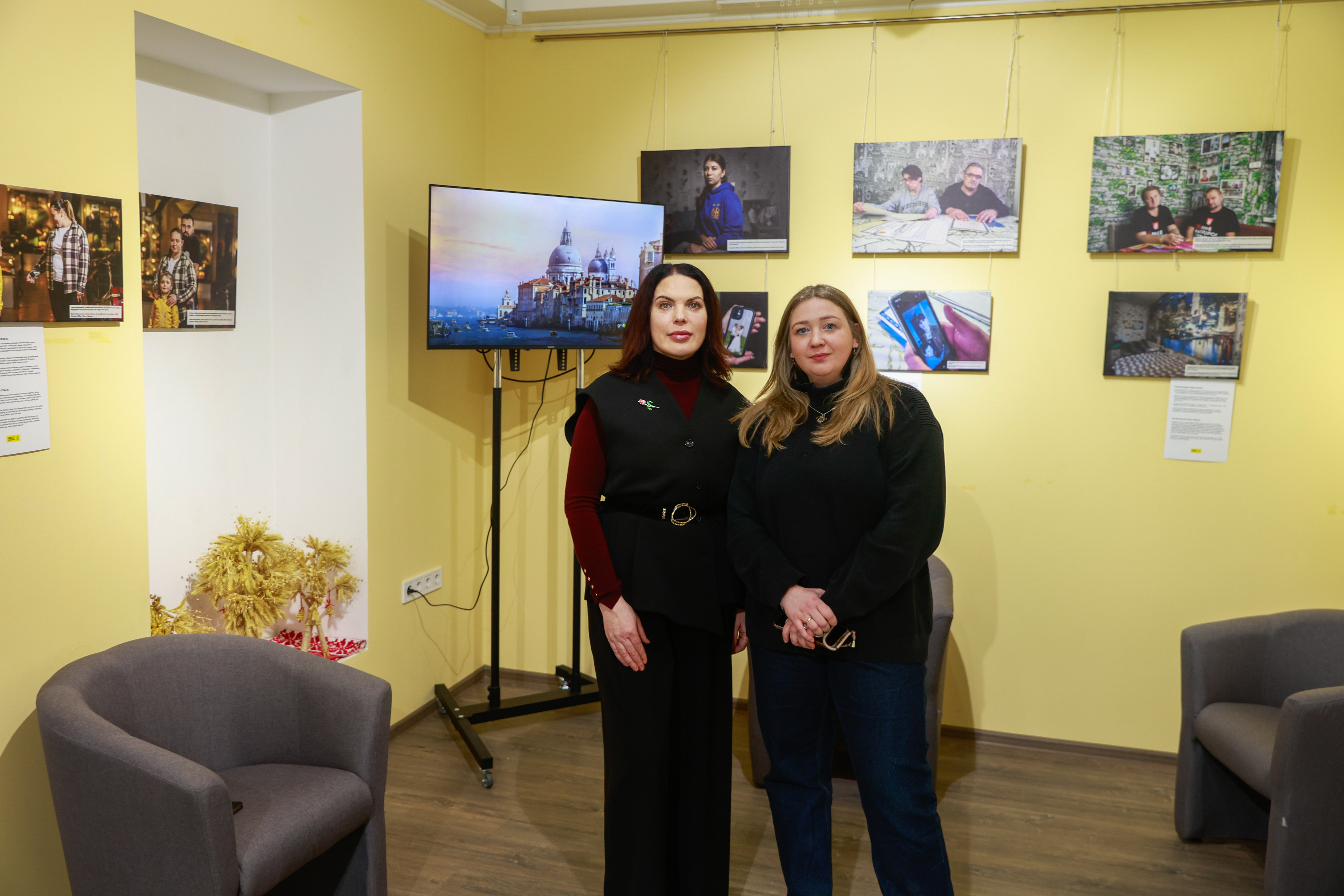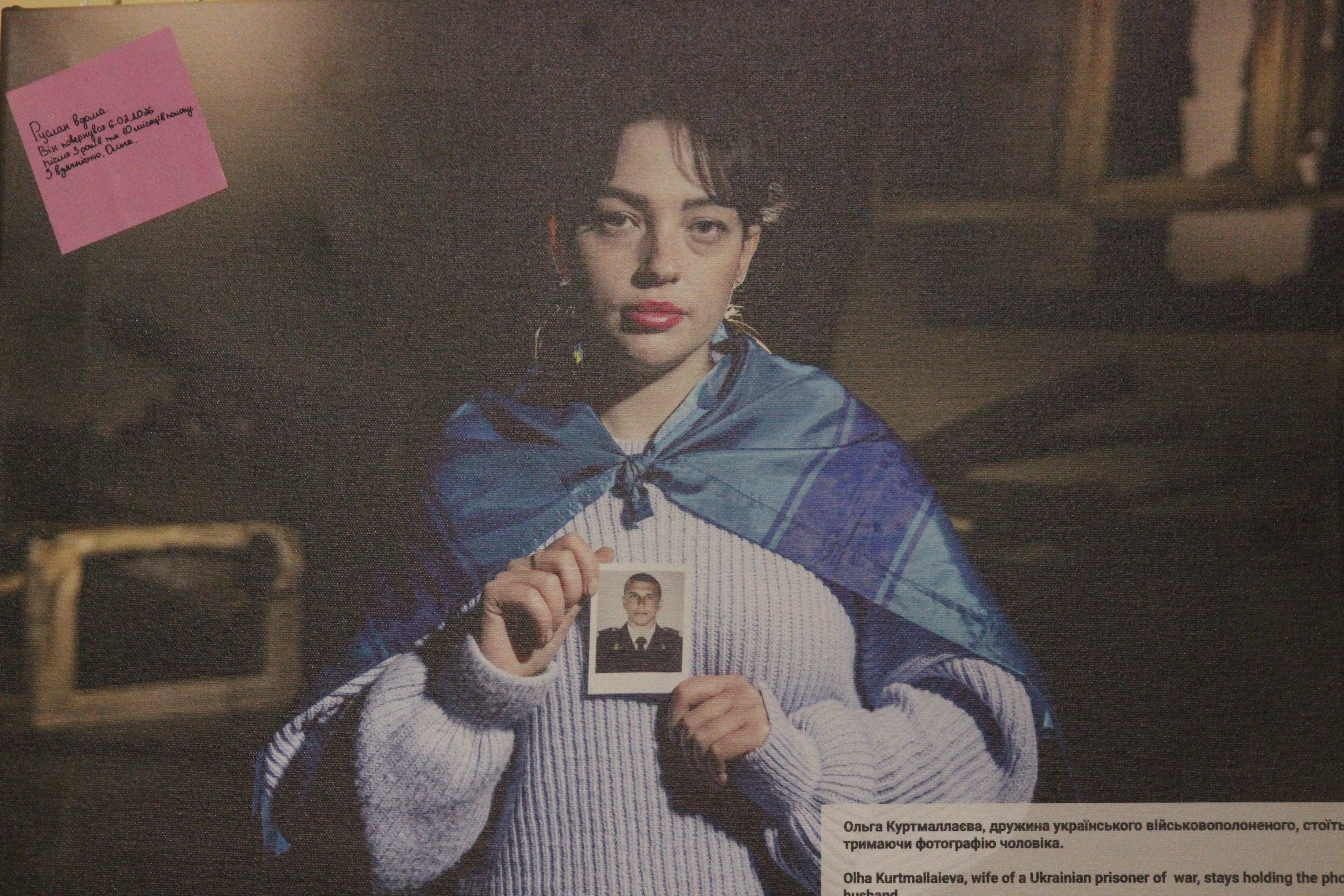 Серед героїв виставки — Ольга Куртмаллаєва, яка має онкологічне захворювання і три роки та десять місяців чекала на повернення чоловіка з полону, водночас публічно борючись за його звільнення. 6 лютого 2026 року її чоловік повернувся додому.