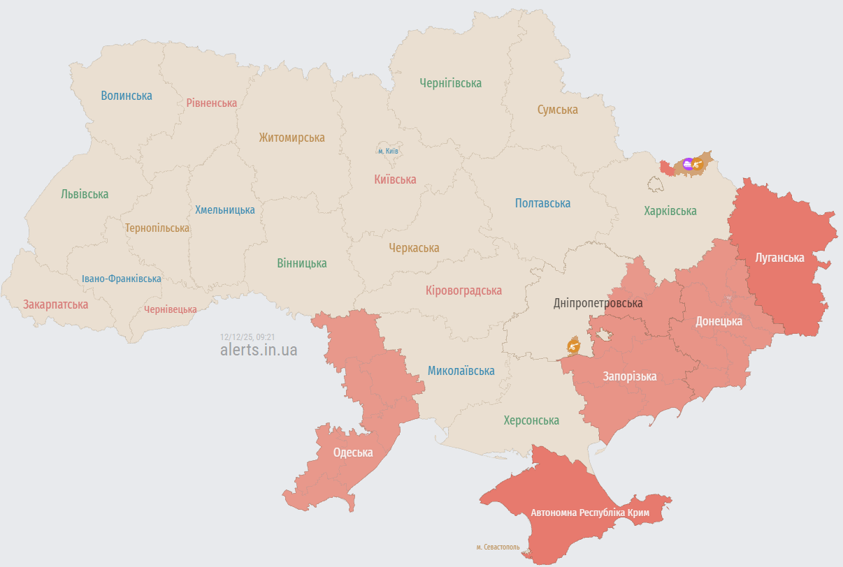 У п'ятницю, 12 грудня, російські ударні безпілотники атакують Україну. Ворожі дрони фіксуються на Сході та Півдні нашої держави.