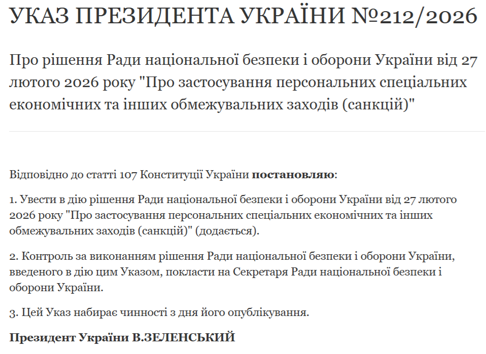 У п’ятницю, 27 лютого, президент України Володимир Зеленський підписав указ, яким увів у дію рішення Ради національної безпеки й оборони щодо застосування санкцій проти 10 російських транспортно-логістичних підприємств. Вони доставляють вантажі на тимчасово окуповані Росією українські території.