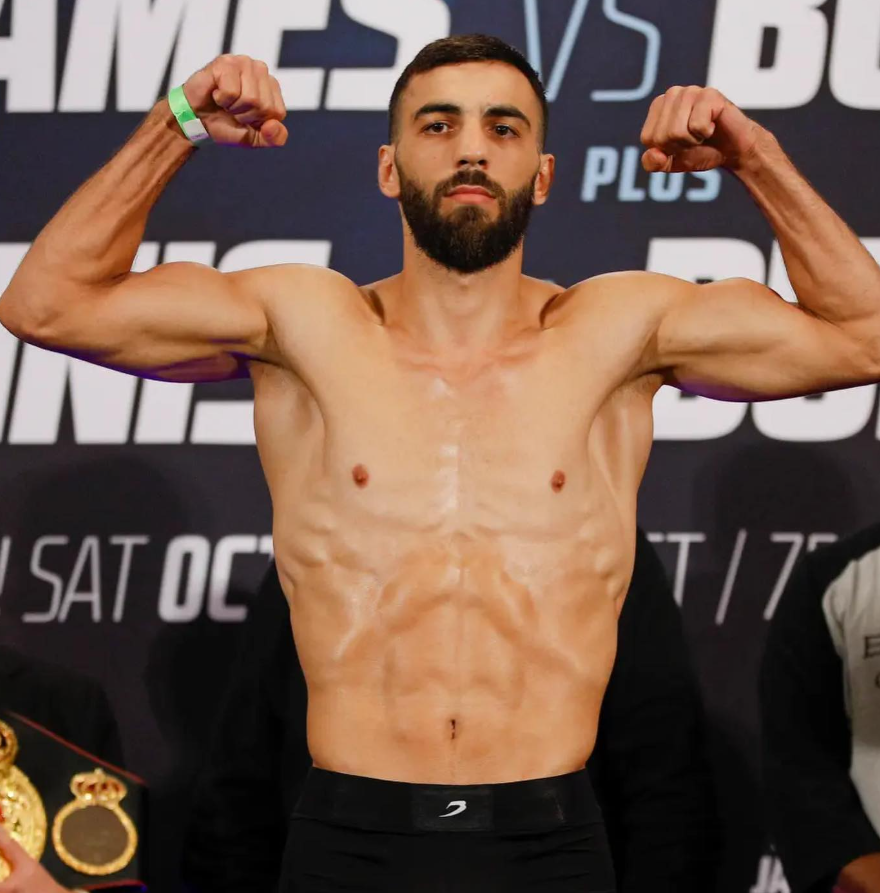 Раджаб Бутаєв — це досвідчений російський боксер-професіонал, який раніше володів титулом регулярного чемпіона світу за версією WBA у напівсередній вазі. Він відомий своєю потужною аматорською школою, де провів понад 450 поєдинків, та агресивним стилем ведення бою в профі, за що отримав прізвисько "Пітон".