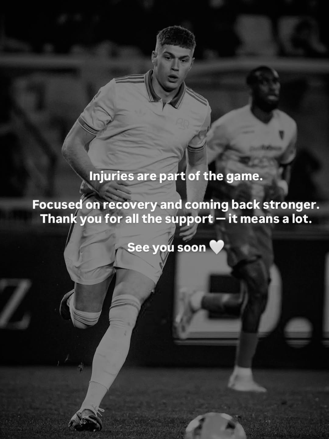 "Травми — це частина гри. Зосереджений на відновленні та поверненні сильнішим. Дякую за всю підтримку — це дуже важливо. До зустрічі незабаром", — написав він у своєму Instagram.