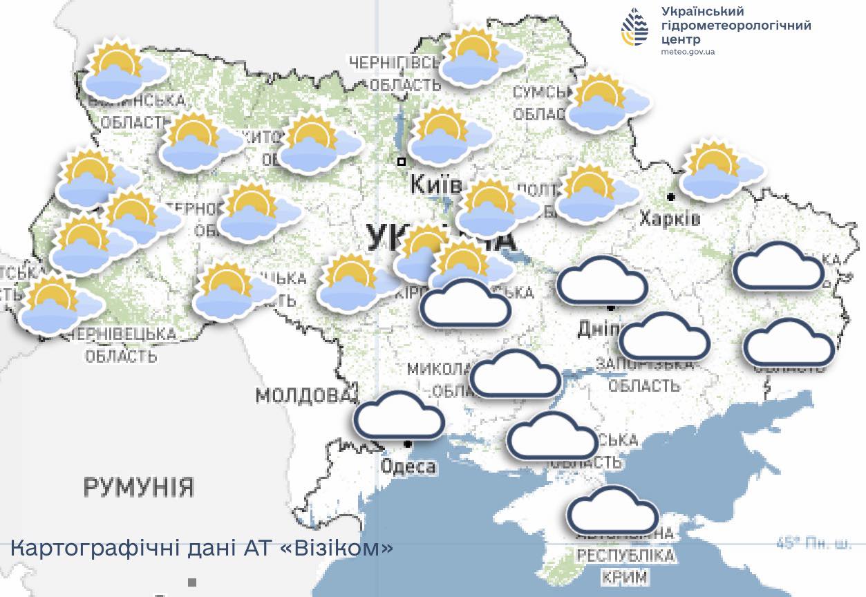 Опадів в Україні не передбачається. На дорогах місцями буде ожеледиця. Вітер переважно північний, 5-10 м/с.