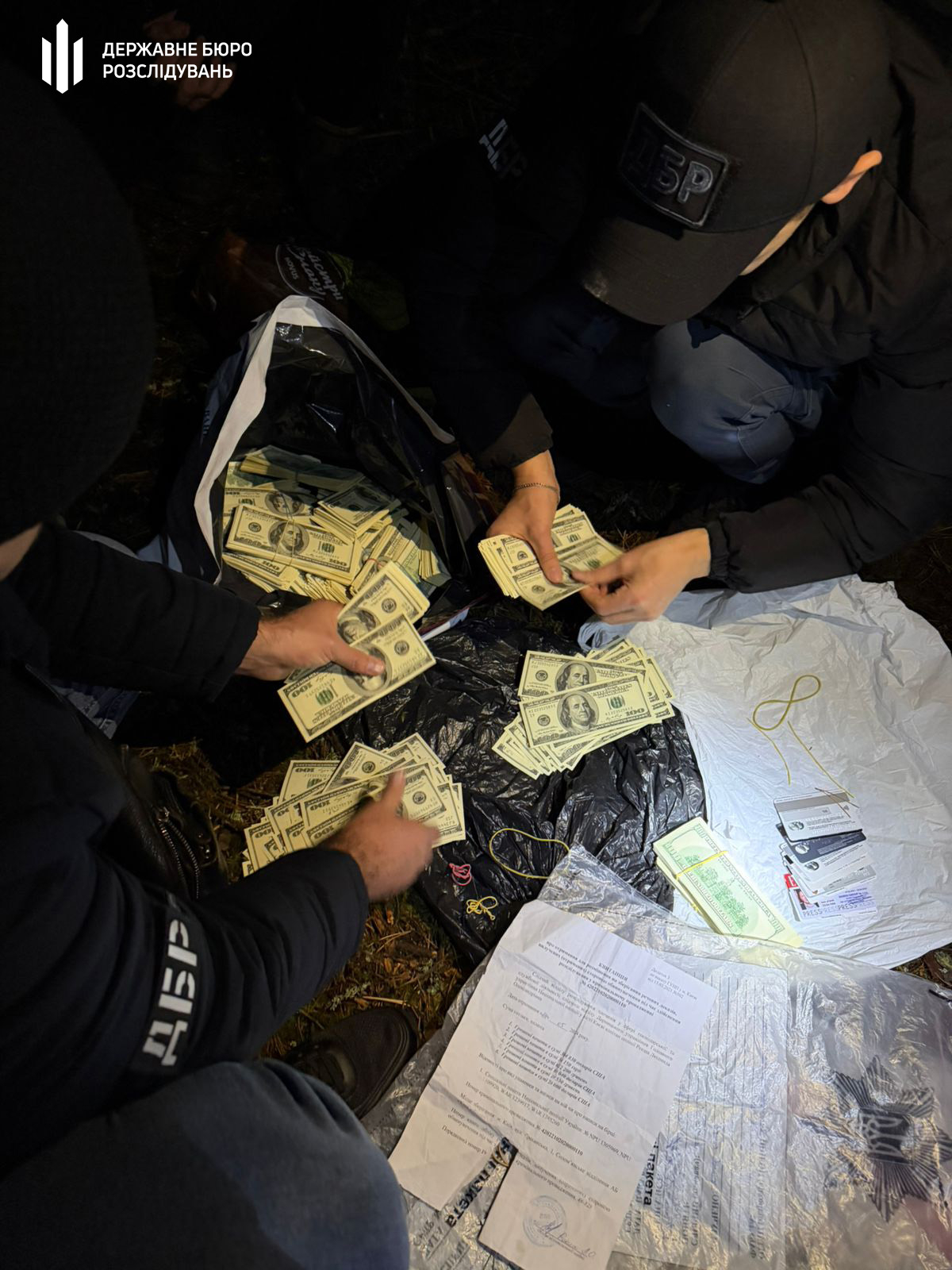 "Під час проведення обшуків автомобіля та "схованки" правоохоронця виявлено та вилучено понад 12,6 мільйона гривень в іноземній валюті", — констатували в ДБР.