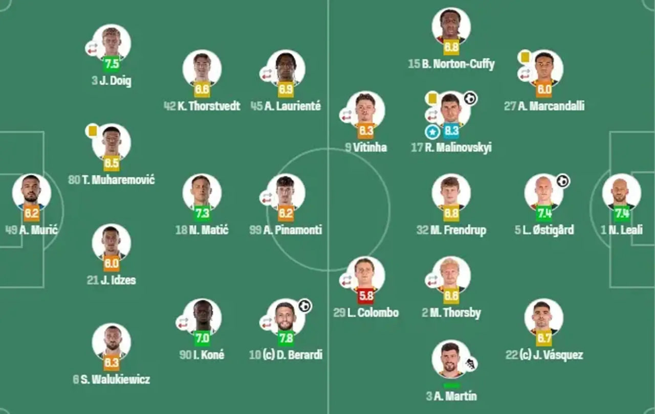 Як повідомляє Tribuna.com, Маліновський отримав найкращу оцінку у складі обох команд. Статистичний портал Sofascore поставив українцеві оцінку 8.3.