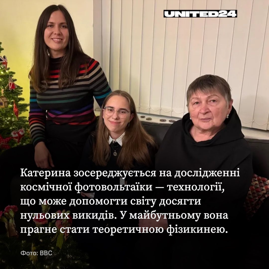 Катерина разом із родиною виїхала з Києва після початку повномасштабного вторгнення. Попри складні умови переїзду, вона продовжила навчання і вже в 16 років долучилася до робіт, які мають значення для світової науки.