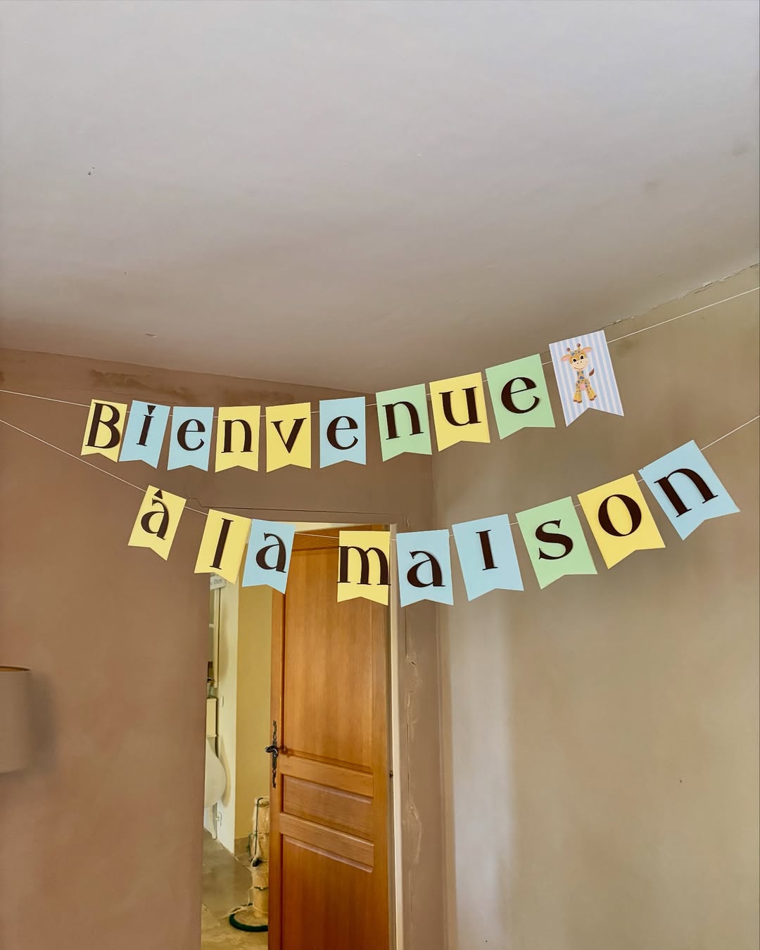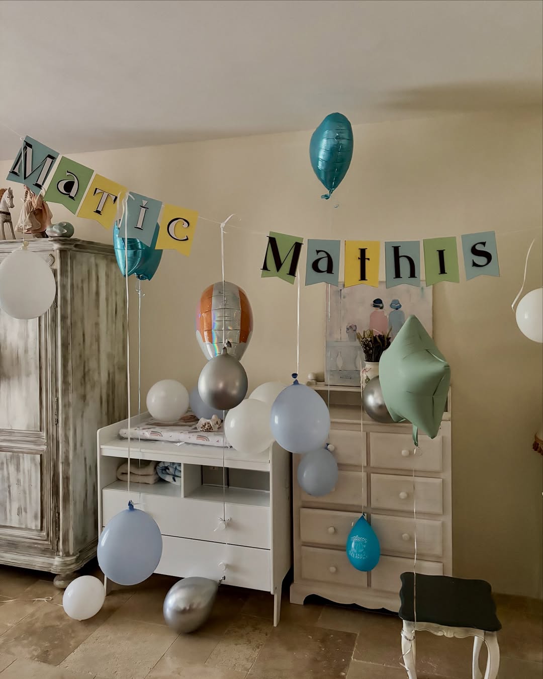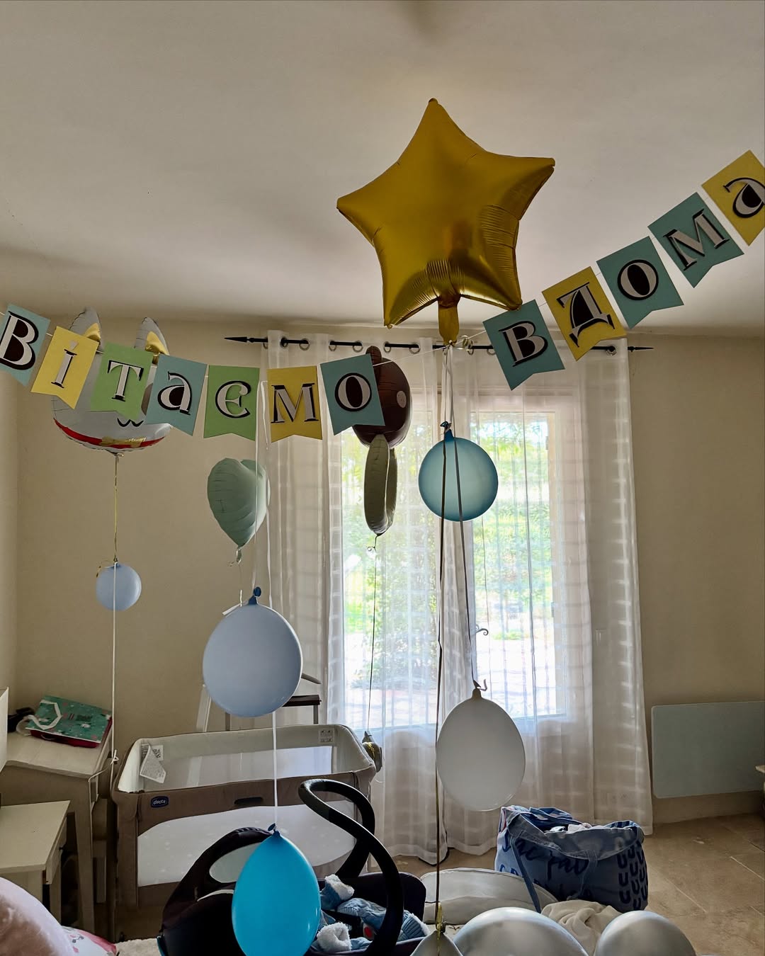 "Ми вже вдома! Дякую моїм подругам і батькам за організацію святкової атмосфери! Бо у Франції такий декор зазвичай ніхто не робить. А мені так хотілося. Тож поки ми з Лораном були в пологовому — нам підготували сюрприз!" — написала вона у своєму дописі.