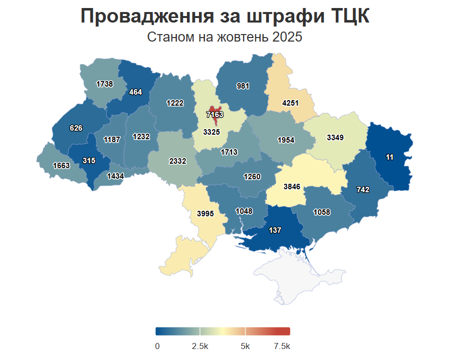 З початку 2025 року в Україні щомісяця фіксують 4,5 тисячі боржників, які протермінували та не сплатили штрафи від Територіальних центрів комплектування. Найбільше порушників на Сумщині — дев'ять проваджень на одну людину.