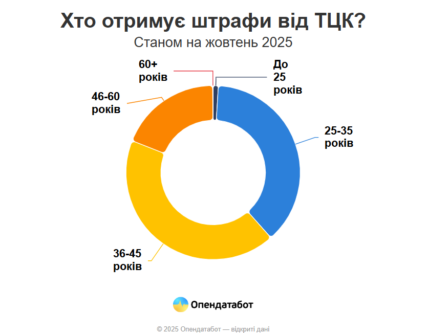 Переважна більшість оштрафованих — чоловіки віком від 25 до 45 років (80% випадків), тоді як на жінок припадає 98 випадків — це лише 0,2% від загальної кількості.