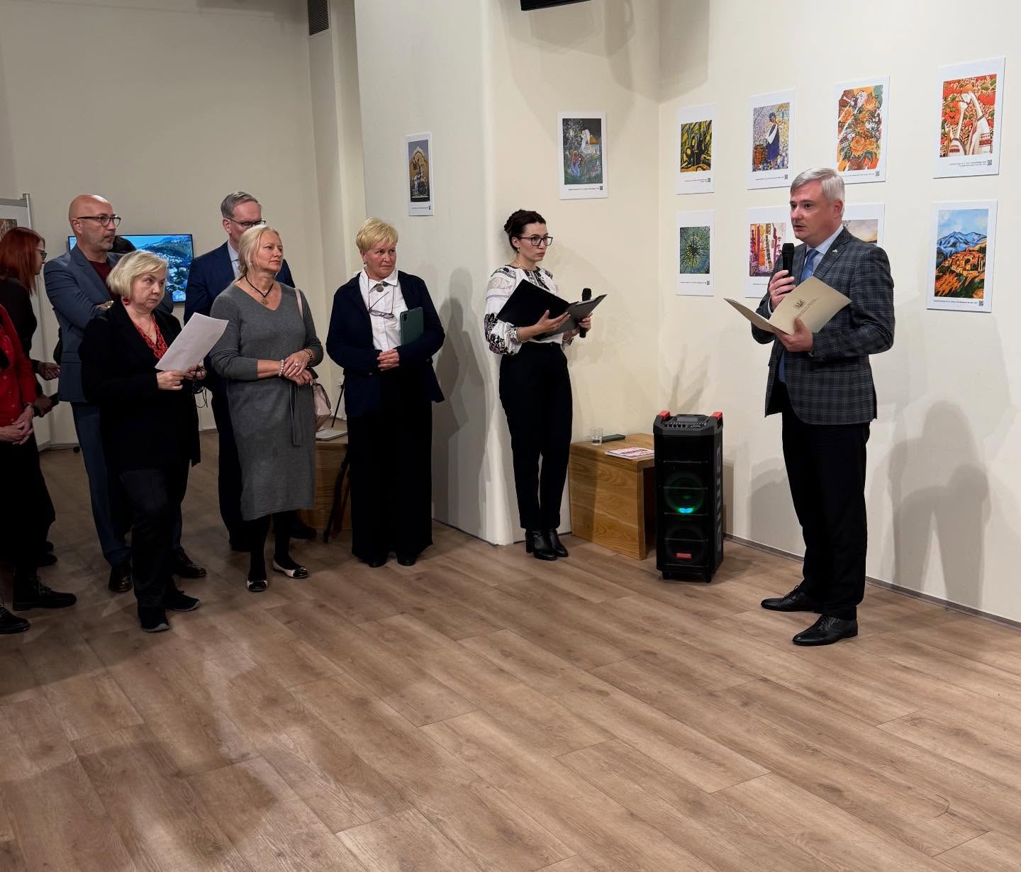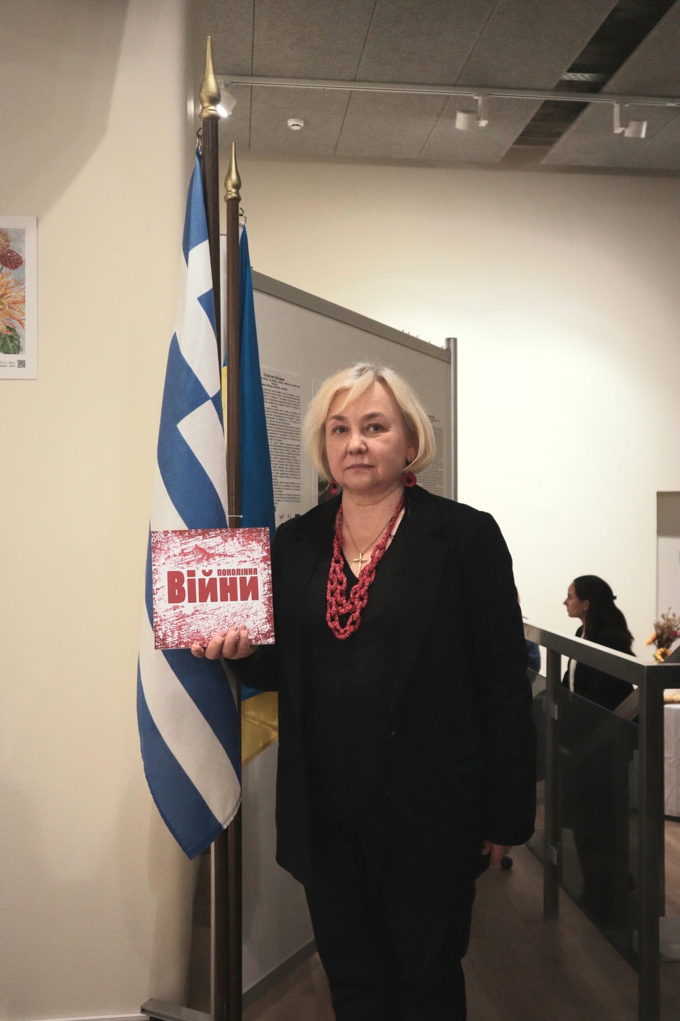 Послу Німеччини та директору культурних програм Goethe-Institut Athen і Інститутів Регіону Європа I Марку-Андре Шмахтелю були подаровані каталоги вибраних робіт "Покоління війни".