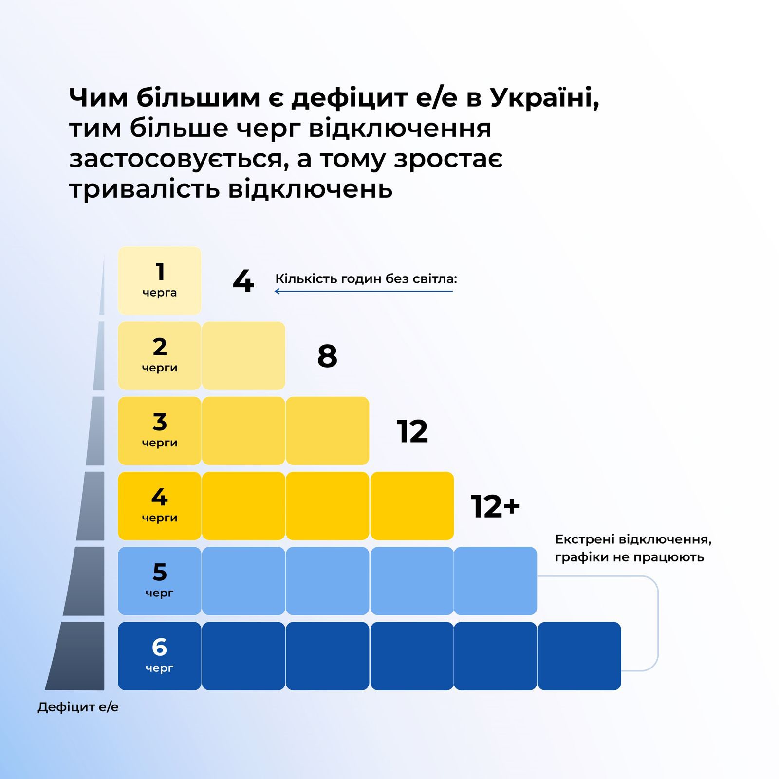 У прес-службі Міністерства енергетики України пояснили, що таке черги відключення світла і як вони працюють.