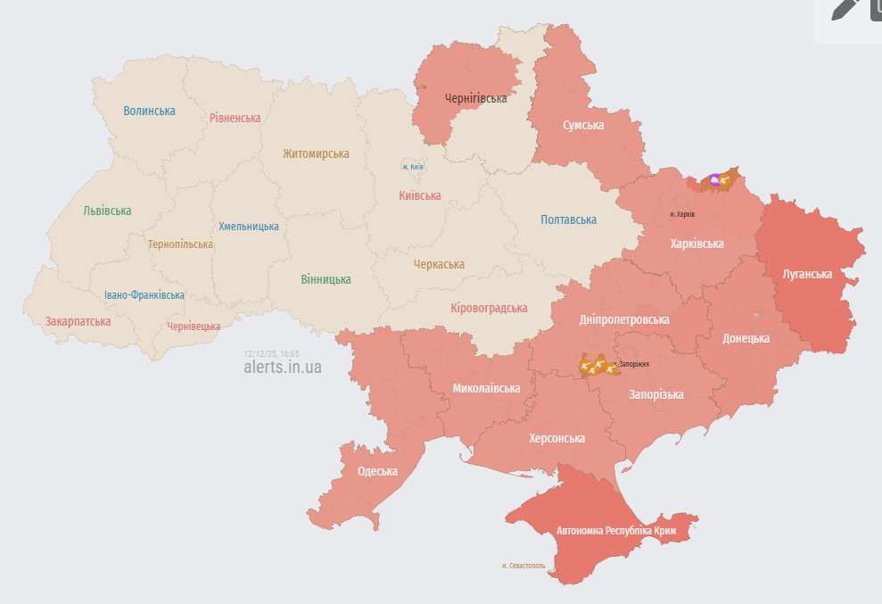 У п'ятницю, 12 грудня, в Одесі прогриміли звуки вибухів. У низці регіонів оголошено повітряну тривогу через ракетну та дронову загрозу.