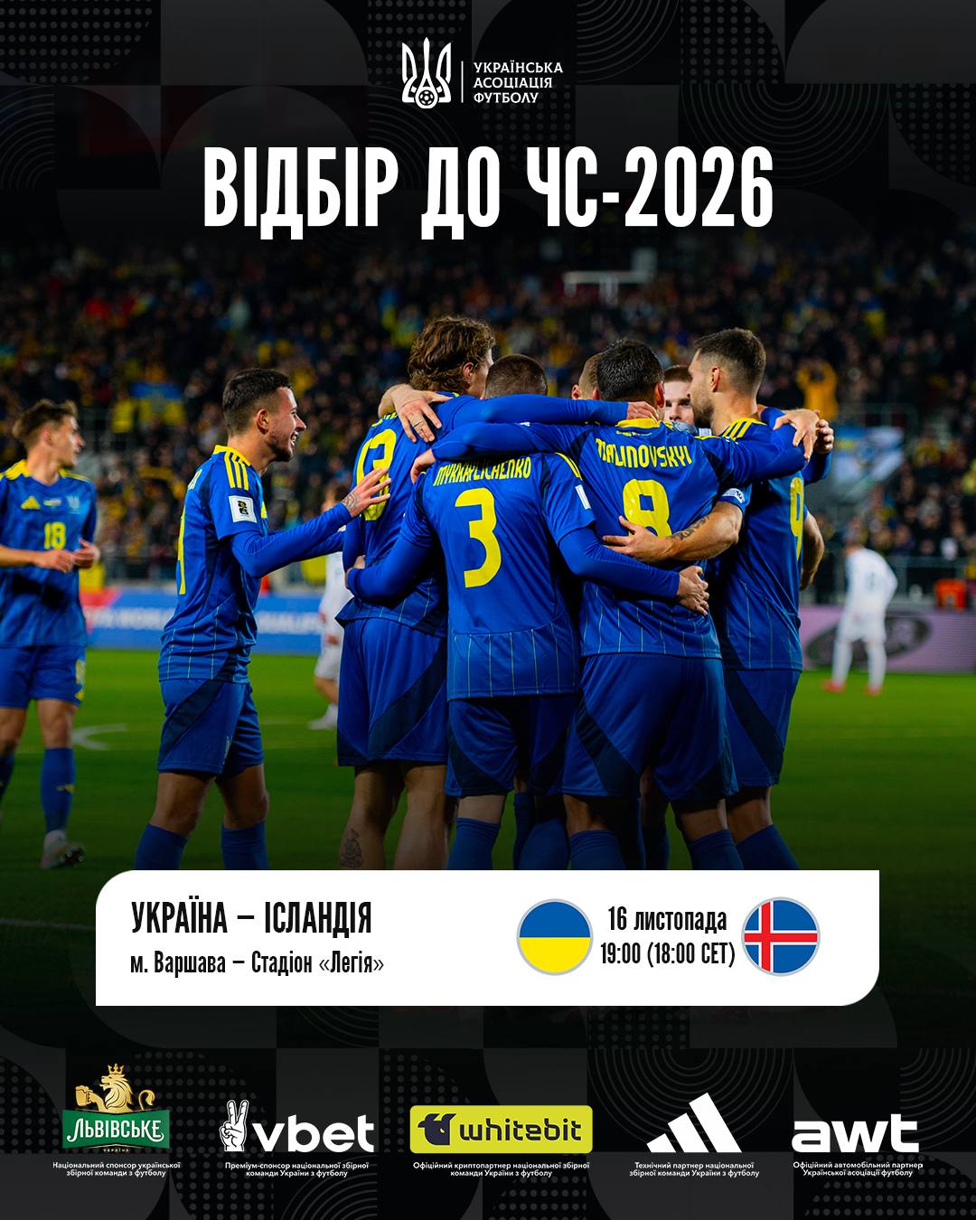 "Офіційно! Відбір ЧС-2026. Матч Україна — Ісландія відбудеться у Варшаві на стадіоні "Легія", — йдеться в повідомленні.