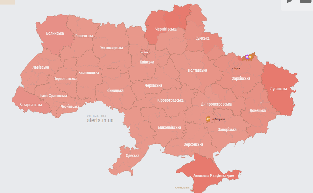 У четвер, 6 листопада, в Україні оголошували масштабну повітряну тривогу. Вже вдруге за день сирени лунали у всіх областях країни. У повітряному просторі було зафіксовано МіГ-31К.