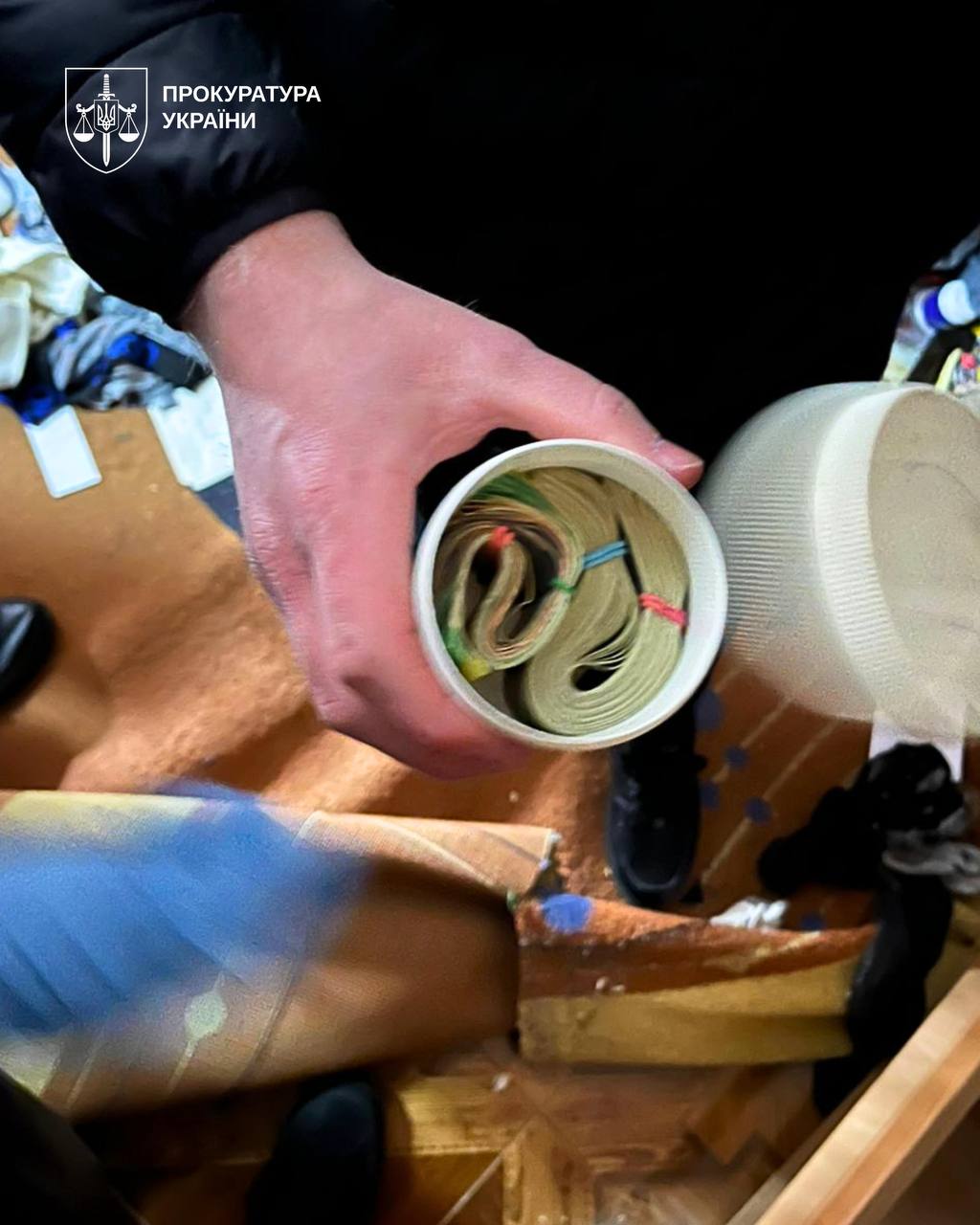 Серед вилученого — мічені купюри, передані як аванс у межах контролю за вчиненням злочину. Наразі готується клопотання про арешт майна.