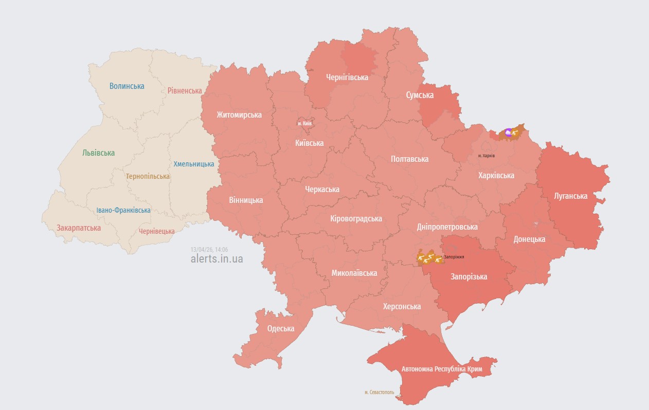 У понеділок, 13 квітня, у більшості областей України оголосили повітряну тривогу. Існувала ракетна небезпека.