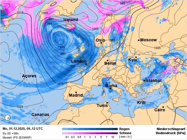 На понеділок, 1 грудня, синоптики передбачають хмарну погоду. Вночі у південній частині, вдень у більшості західних і Вінницькій областях невеликий дощ, у Карпатах із мокрим снігом. На решті території без істотних опадів.