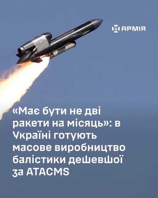 "Це буде аналог ATACMS, можливо навіть із більшою бойовою частиною. Але коштуватиме мінімум удвічі дешевше", — зазначив конструктор.