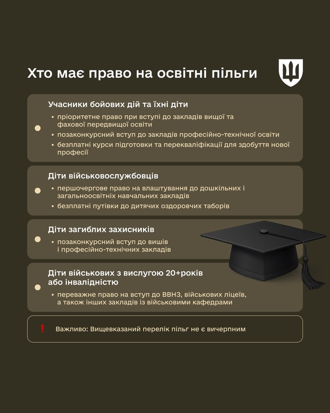 Важливо: перелік пільг не є вичерпним і постійно оновлюється.