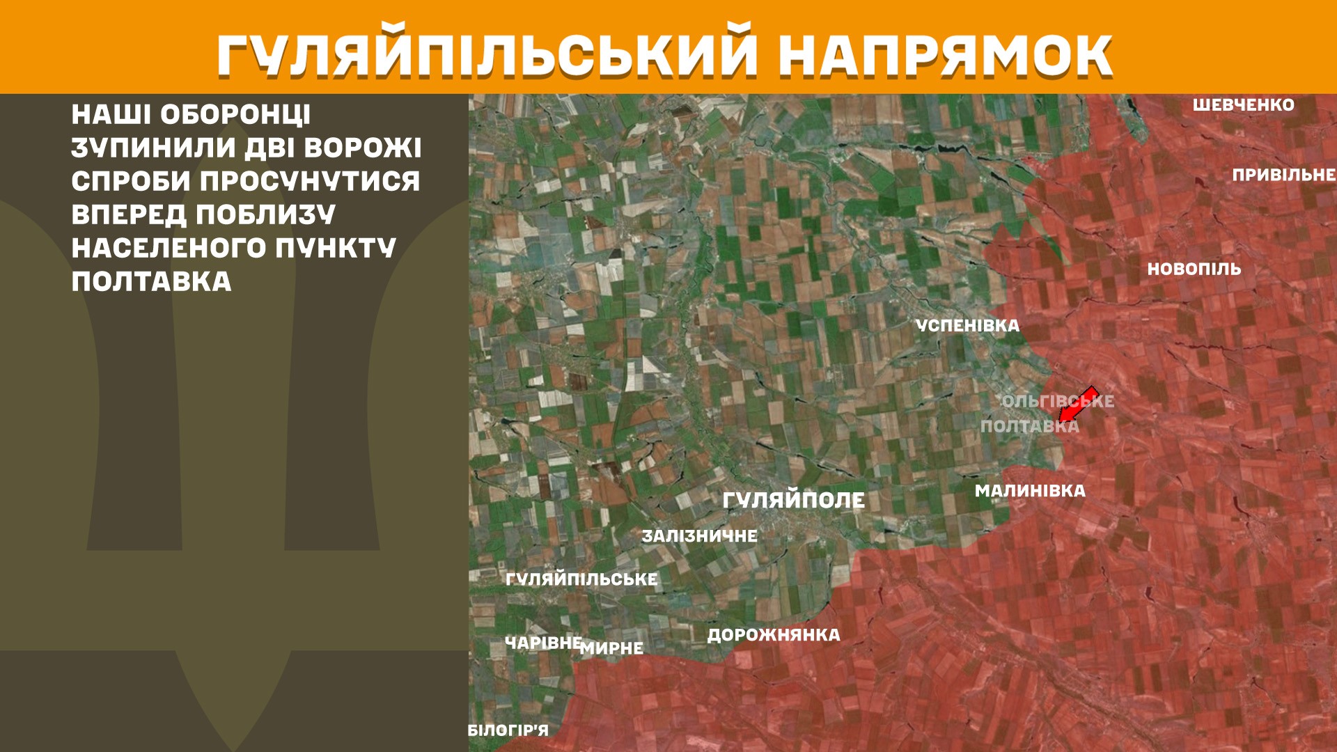 На Гуляйпільському напрямку наші оборонці зупинили дві ворожі спроби просунутися вперед поблизу населеного пункту Полтавка.