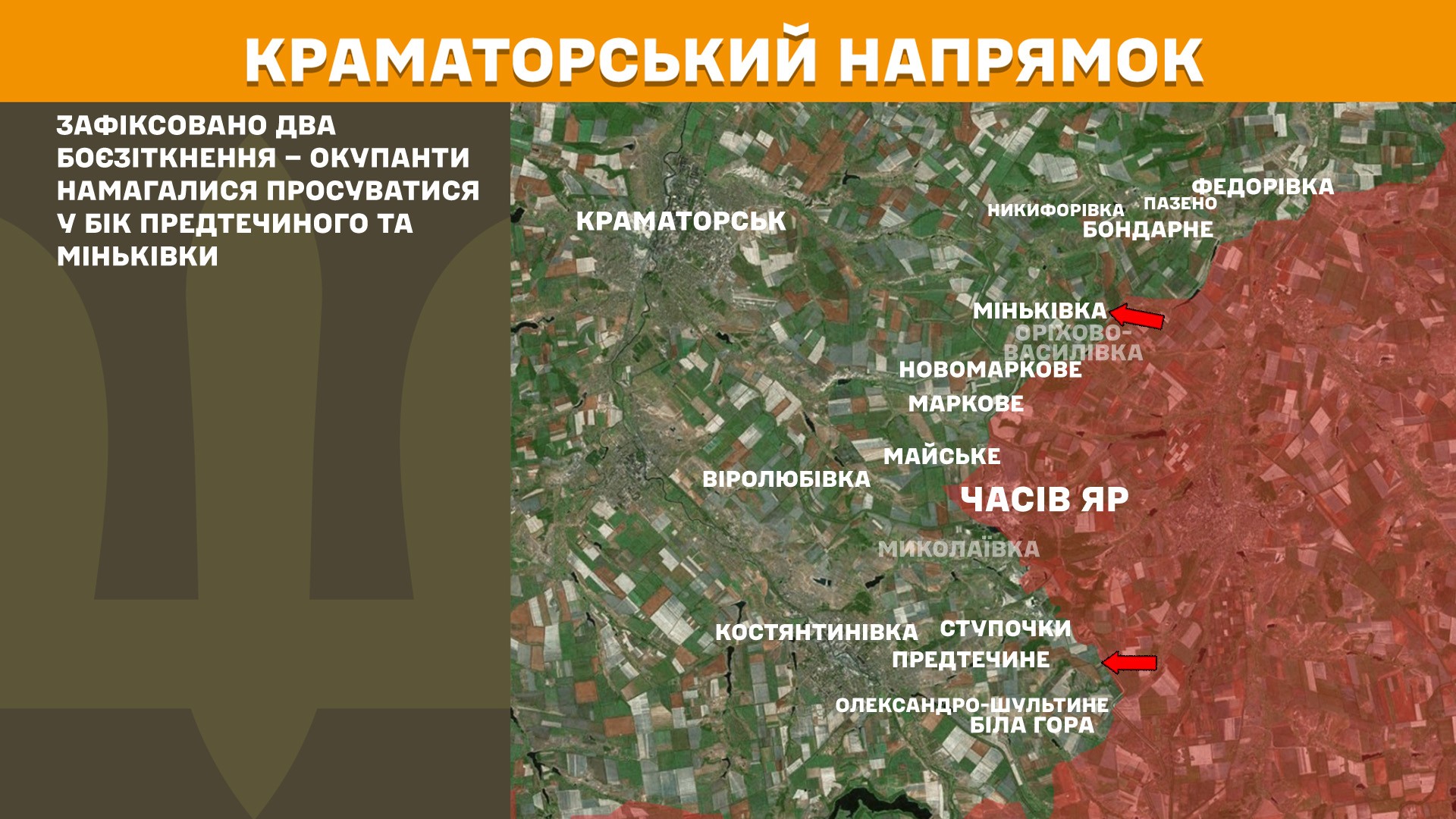На Краматорському напрямку вчора зафіксовано два боєзіткнення – окупанти намагалися просуватися у бік Предтечиного та Міньківки.