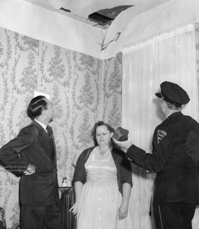 Частина метеорита, що падав, пробила дах будинку Енн Ходжес. У той день жінка була вдома зі своєю матір'ю. Життя жінки врятувала звичайна ковдра.