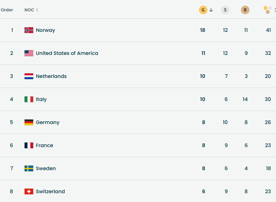Для Норвегії це четверта поспіль перемога у медальному заліку Олімпійських ігор. Востаннє вони їх не вигравали 2010 року — тоді посіли четверте місце.
