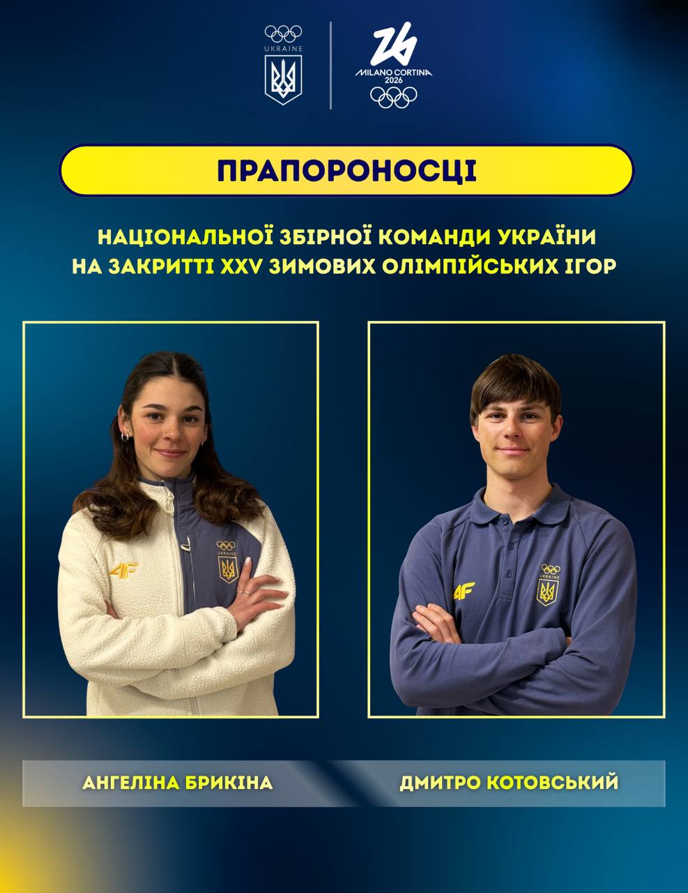 Почесну місію нести прапор отримали лижні акробати, срібні призери чемпіонату світу — дебютанка цьогорічних Ігор Ангеліна Брикіна та дворазовий учасник Ігор Дмитро Котовський.