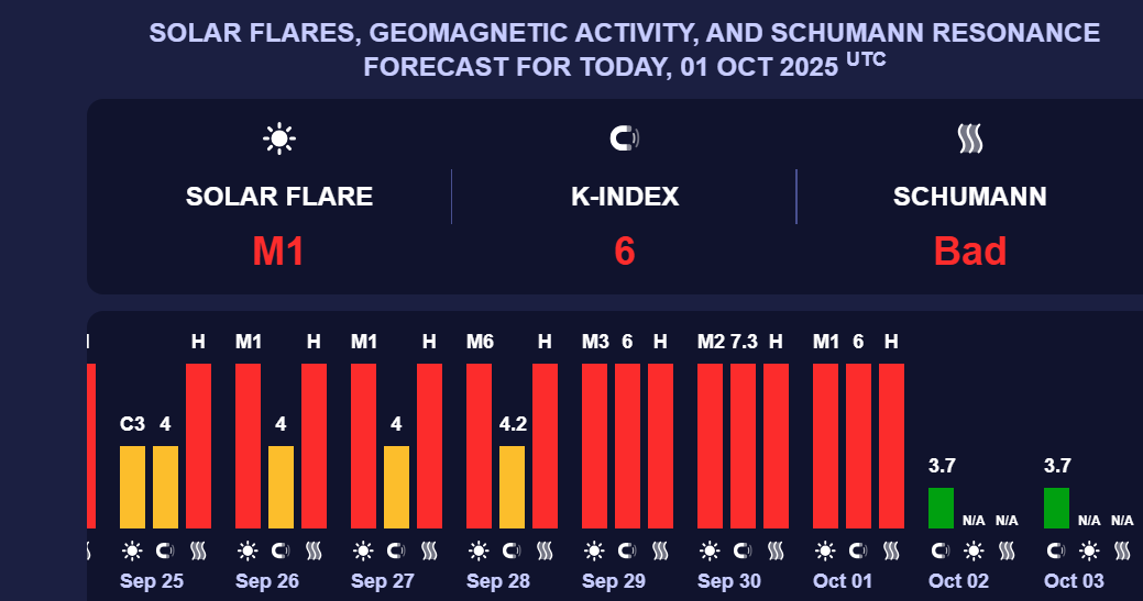 У четвер, 2 жовтня, Землю накрила дуже потужна магнітна буря з К-індексом шість балів. У п'ятницю геомагнітне поле буде у збудженому стані, але при цьому суттєвих магнітних бур не очікується.