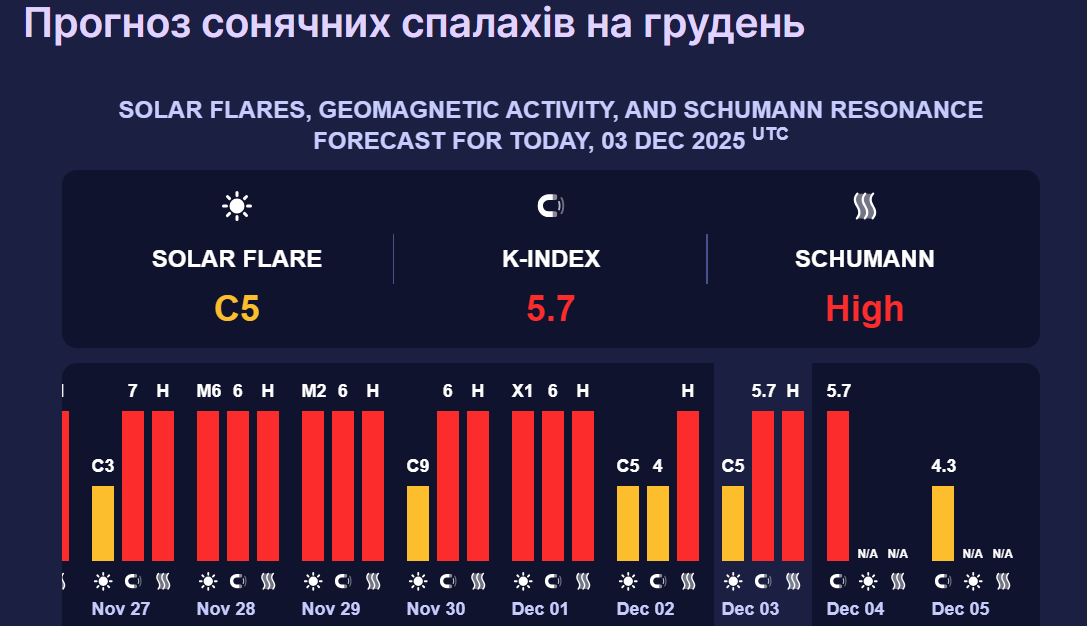 Додамо, згідно з даними Центру прогнозування космічної погоди NOAA, у грудні магнітні бурі будуть різної інтенсивності.