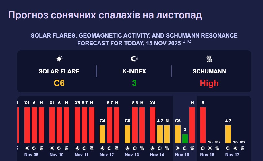Вона вважається потужною та негативно впливає на самопочуття метеозалежних людей. Втім, вже 17 листопада геомагнітна активність піде спаде до 4,7 бала.