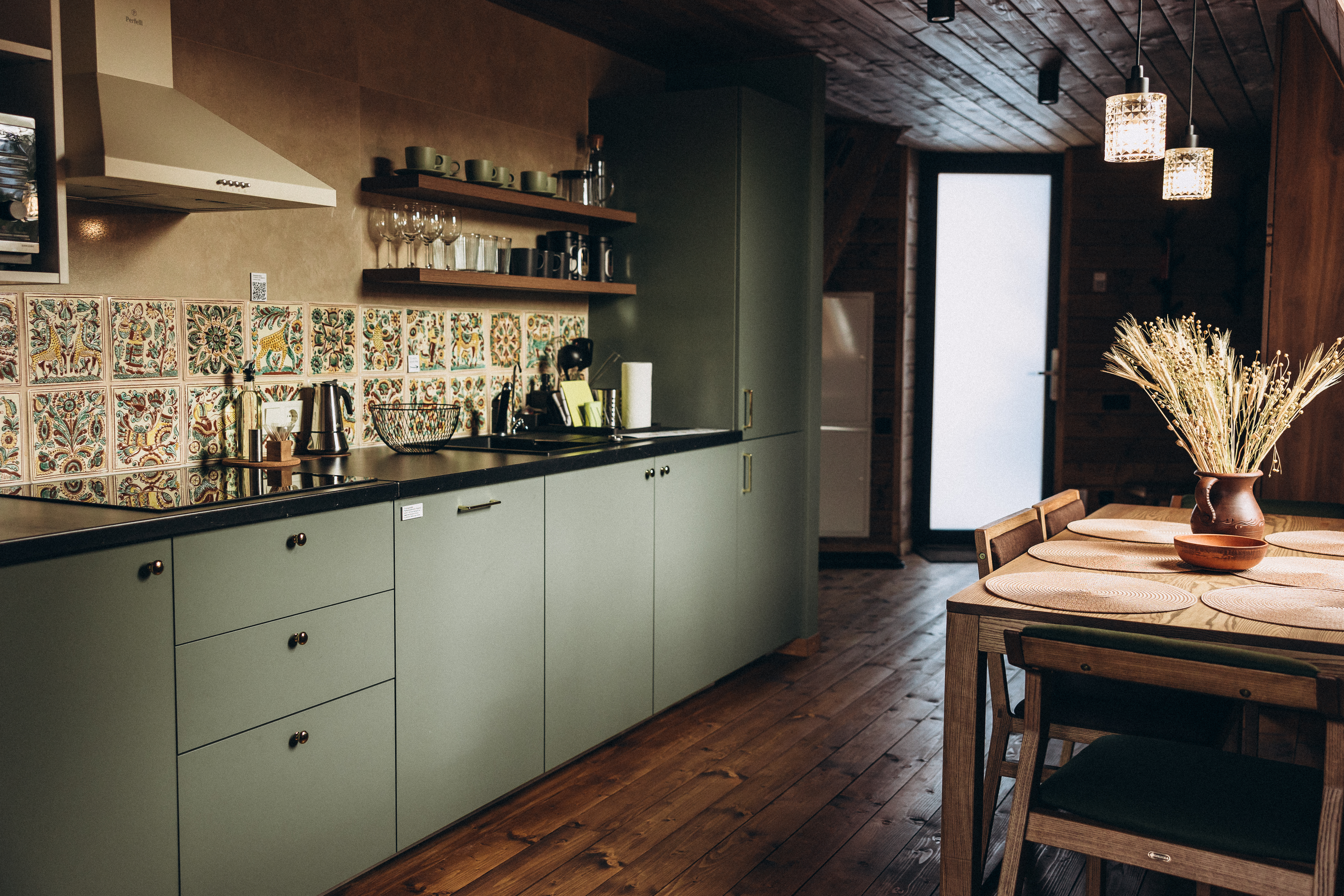 У котеджах передбачено все, що може знадобитися для комфортного кількаденного відпочинку. Постіль з декількома подушками на вибір для найкращого сну, махрові мʼякі халати, кава та чай, чиста питна вода, повністю укомплектована кухня, необхідне приладдя для гриля — гостям залишається лише розкласти речі й насолоджуватися тишею.