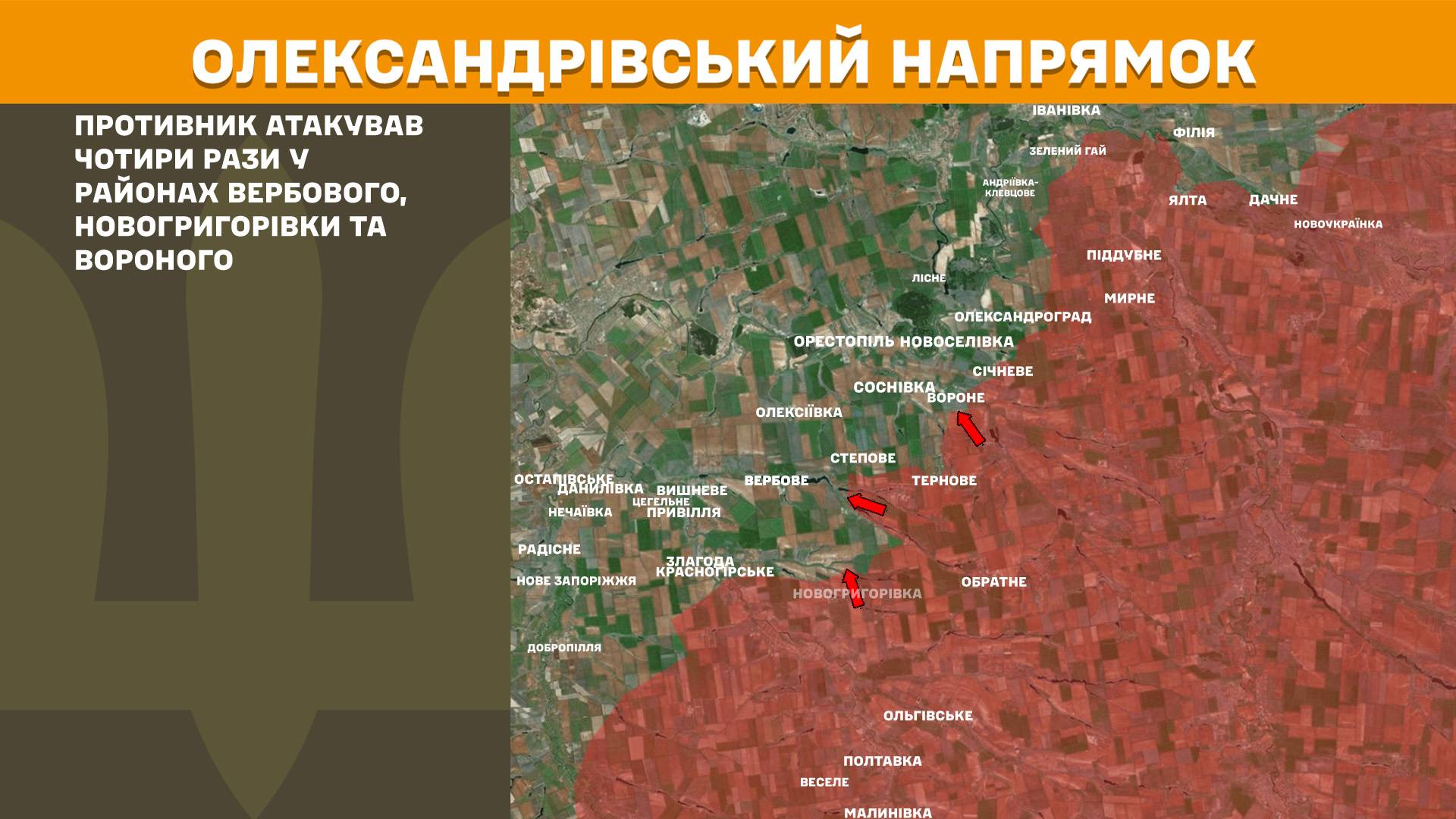 На Олександрівському напрямку противник атакував чотири рази у районах Вербового, Новогригорівки та Вороного.