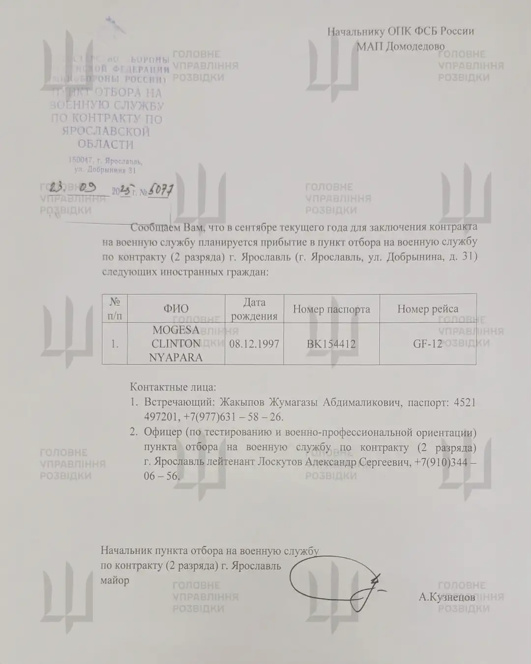 У ГУР зазначили, що чоловіки мали стабільну роботу в охоронних компаніях Катару, проте піддалися на обіцянки легких грошей і прибули до російського Ярославля восени 2025 року для підписання контрактів. Посередником у цій схемі виступив громадянин Киргизстану Алмамбет, який не лише підписував документи від імені іноземців, а й отримав повний контроль над їхніми банківськими рахунками.