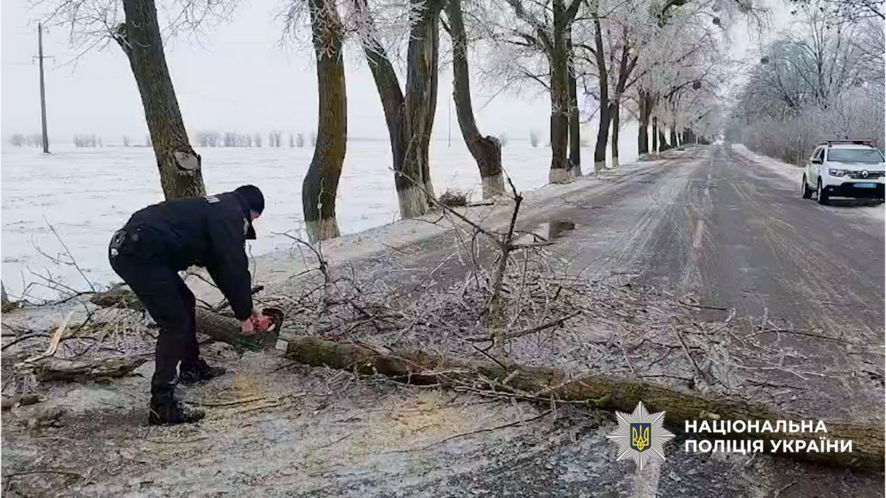 У четвер, 8 січня, більшість областей України накрила негода. Внаслідок хуртовини на Київщині зафіксували повалені дерева, а деякі автомобілі опинилися у сніговій пастці.Про це повідомила прес-служба поліції Київщини."Правоохоронці столичного регіону працюють у посиленому режимі та допомагають громадянам у період ускладнення погодних умов", — йдеться у повідомленні.Окрім ожеледиці, спостерігається обмерзання дерев, що призводить до їх падіння на проїзну частину та створює небезпеку для учасників дорожнього руху.. Так, на Білоцерківщині правоохоронці прибрали з дороги повалені дерева та гілля, а також надали допомогу водієві, який застряг на засніженій ділянці дороги, щоб інші учасники руху могли безперешкодно продовжити рух. Також на одній із вулиць у Таращанській громаді правоохоронці допомогли водійці замінити пробите колесо на автомобілі.Поліція Київщини закликає громадян:бути уважними;дотримуватися правил безпеки;за можливості, уникати перебування поблизу обмерзлих дерев. "Власникам транспортних засобів рекомендуємо враховувати складні погодні умови та паркувати автомобілі у безпечних місцях", — додали в поліції.Напередодні синоптики спрогнозували, що 8 та 9 січня погода у Києві суттєво погіршиться. Мешканців столиці попередили про небезпеку на дорогах, де очікується ожеледиця.Крім того, в КМДА закликали мешканців столиці зарядити павербанки, зробити запаси води та утеплити оселю. Причина — можливі обстріли та похолодання.Нагадаємо, раніше у КМДА повідомляли, що у разі значного ускладнення погодних умов можуть обмежити в’їзд великогабаритного транспорту до Києва. Для цього Київська обласна військова адміністрація визначила 55 пунктів контролю руху вантажівок і місць відстою транспорту на автомобільних дорогах державного значення.Додамо, 8 січня західні регіони України накрили хуртовини, а на дорогах утворилася ожеледиця. Внаслідок негоди на дорогах утворилися значні затори..