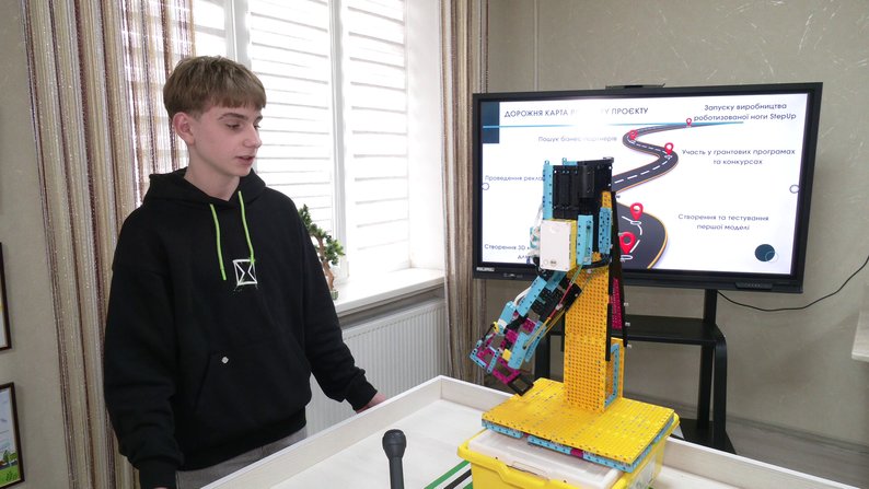 Учень дев'ятого класу обласного наукового ліцею в селищі Клевань Андріан Гордійчук створив інноваційний макет тренажера, призначеного для реабілітації ніг. Пристрій сфокусований на відновленні м’язової сили, а також рухливості колінного суглоба та стопи. Про це повідомляє "Суспільне".Для створення прототипу Андріан використав базові деталі конструктора "Лего", три сервомотори (два великі та один малий) та контролер LegoHub для керування. Сам винахідник зазначив, що мотивацією для розробки ортезу стало його близьке розташування до госпіталю ветеранів війни. "Я живу неподалік від госпіталю... і кожного дня бачу людей, які потребують реабілітації", — пояснив школяр.Проект Андріана під назвою "StepUp" допомагає людям у відновленні ходьби й створювався протягом двох місяців. Ця розробка принесла хлопцю срібну медаль у фіналі всеукраїнського конкурсу, організованого Малою академією наук, і забезпечила місце у переліку найкращих юних новаторів країни.. Заступник директора ліцею з наукової роботи Віталій Переходько підкреслив ключові переваги "StepUp": він малобюджетний (орієнтовна вартість прототипу становить від 1,5 до 4 тисяч гривень) та простий у використанні, оскільки не потребує спеціального персоналу для роботи. Переходько також зауважив, що подібні тренажери-ортези наразі не виробляються в Україні.Наступним кроком, після створення макета, стане розробка повноцінної 3D-моделі ортезу. Плани ліцею амбітні: "Після закупівлі потужнішого обладнання плануємо створити перший тренажер і звернутися до госпіталю ветеранів війни, аби мати змогу протестувати його", — додав Віталій Переходько. Директор Рівненського обласного клінічного госпіталю Андрій Бурачик вже повідомив, що має намір найближчим часом оглянути винахід Андріана Гордійчука, щоб оцінити його ефективність для реабілітаційних потреб.Нагадаємо, українські школярі взяли участь у міжнародному науково-технологічному ярмарку MOSTRATEC, який відбувся з 27 до 31 жовтня у Нову-Гамбургу (Бразилія). Двоє з них отримали нагороди цього заходу..