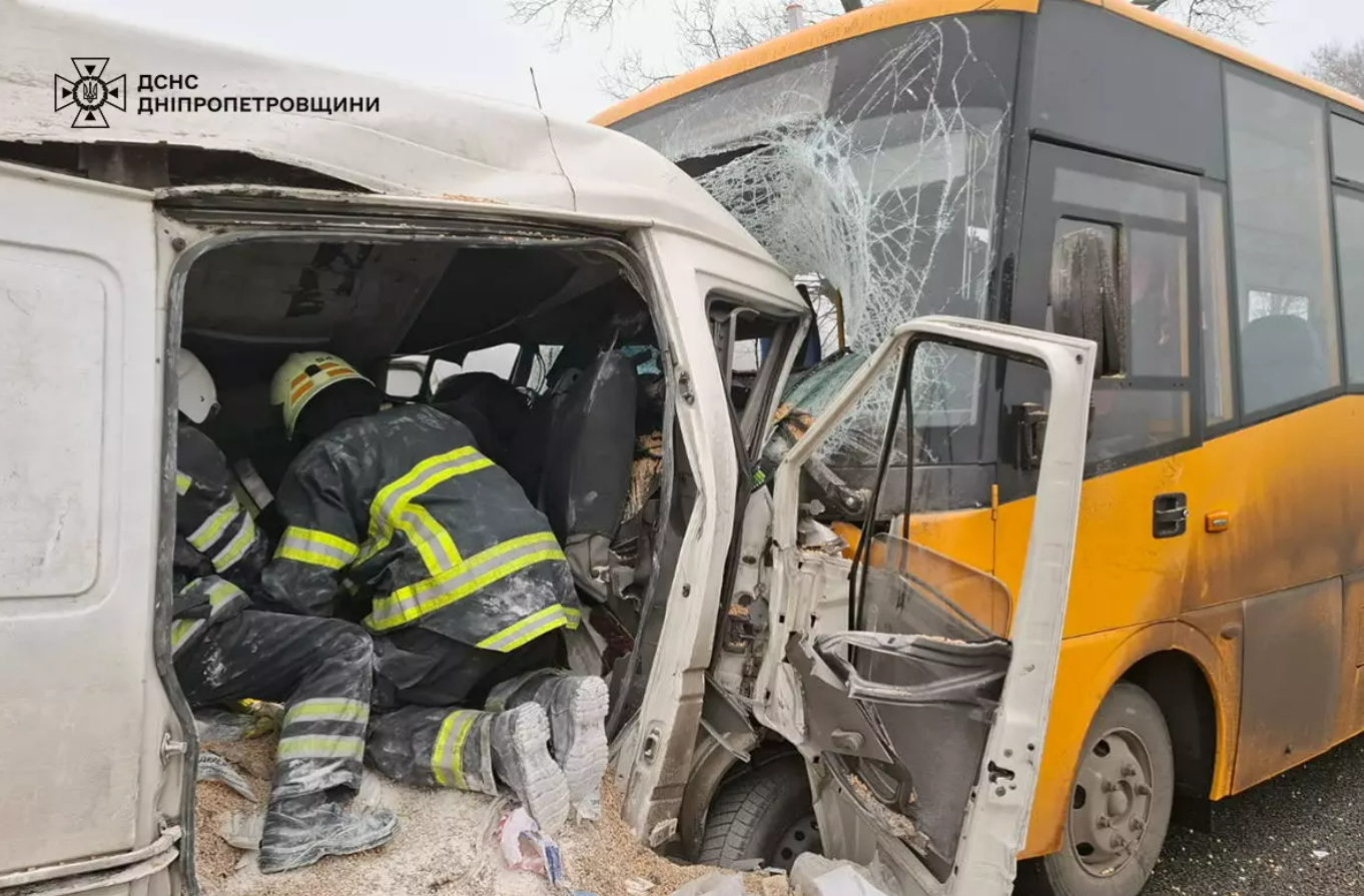 Вранці 11 грудня у Дніпропетровській області сталася дорожньо-транспортна пригода за участі шкільного автобуса. Двоє людей загинули.Про це повідомила Державна служба з надзвичайних ситуацій. Аварія трапилася на автошляху "Стрий-Луганськ-Ізварине" поблизу села Саксагань Кам’янського району.Зокрема на дорозі зіткнулися шкільний автобус ЗАЗ із автомобілем Volkswagen LT. У мікроавтобусі Volkswagen в результаті зіткнення загинули двоє чоловіків.Водночас, як уточнили у поліції, водій та пасажири шкільного автобуса, серед яких 14-річна дівчина, отримали тілесні ушкодження. Загалом травмувалися 10 осіб.Слідство встановило, що 29-річний водій автомобіля Volkswagen виїхав на зустрічну смугу руху та допустив зіткнення зі шкільним автобусом, який рухався в зустрічному напрямку."Для встановлення всіх обставин ДТП на місце аварії виїхали слідчі. За даним фактом відкрито кримінальне провадження за ч. 3 ст. 286 Кримінального кодексу України", — додали у поліції. .