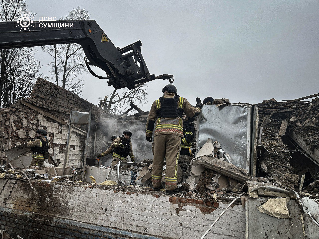 У четвер, 11 грудня, війська країни-агресорки завдали удару авіабомбою по Сумщині. Загинули двоє людей.Про це повідомила Державна служба з надзвичайних ситуацій. Зазначається, що росіяни скинули керовану авіабомбу на магазин у Великописарівській громаді.За даними ДСНС, ворог вдарив по магазину в той момент, коли всередині перебували люди. Сталися значні руйнування, виникла пожежа."Паралельно з ліквідацією займання рятувальники проводили розбір завалів. Для пошукових робіт були залучені додаткові сили з обласного центру", — йдеться у повідомленні.Внаслідок атаки загинули двоє місцевих мешканок. Їх тіла виявили під завалами будівлі.. Нагадаємо, у ніч на 11 грудня Росія завдала потужного комбінованого удару по об’єктах критичної інфраструктури України, застосувавши дрони та балістичні ракети. Загалом було зафіксовано влучання 69 ударних безпілотників та однієї балістичної ракети "Іскандер-М/KN-23" на 34 локаціях..