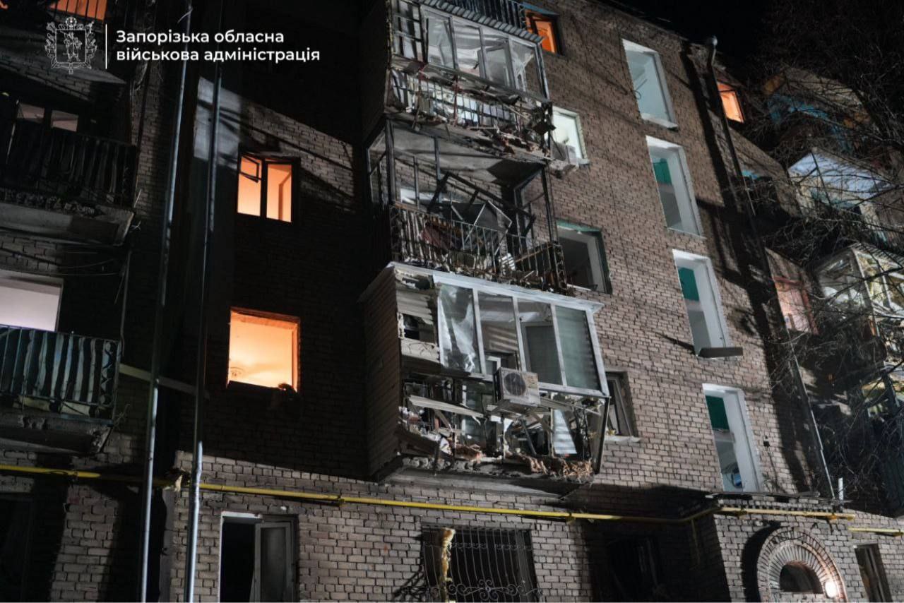 Вночі 24 лютого російські окупанти масовано атакували Запоріжжя безпілотниками. У місті є значні пошкодження.Про це повідомив голова Запорізької обласної військової адміністрації Іван Федоров. За його словами, росіяни завдали щонайменше вісім ударів по Запоріжжю.Під прицілом ворога були багатоповерхівки, нежитлові будівлі та об'єкти інфраструктури. На місцях влучань працюють екстрені служби."Ворожі безпілотники пошкодили житлові будинки — комунальники вже розпочали роботи з ліквідації наслідків атаки. На місці працюють і співробітники екстрених та фахівці соціальних служб, щоб зафіксувати збитки, завдані ворогом", — зазначив Федоров.. До того ж, як відзначив посадовець, ворог атакував й Запорізький район. Окупанти вдарили керованими авіабомбами по Комишувасі. На території сільгосппідприємства є руйнування, виникла пожежа."Пораненння отримав 87-річний чоловік. Йому надана уся необхідна медична допомога", — додав Федоров.Нагадаємо, вночі та вранці 22 лютого російські загарбники атакували енергетичні об’єкти в декількох регіонах України. Внаслідок цього знеструмлені споживачі в Одеській, Миколаївській, Дніпропетровській, Запорізькій і Полтавській областях.Також вночі та вранці 22 лютого російські загарбники атакували столицю та Київщину. У передмісті столиці зафіксовано падіння уламків. Серед постраждалих — дитина..