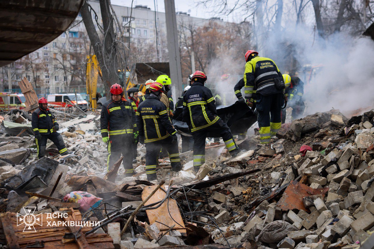 У Харкові внаслідок нічного ракетного удару окупантів 7 березня сталося пряме влучання у житловий будинок, що призвело до масштабних руйнувань. На місці трагедії працюють рятувальники, які вже деблокували тіло загиблої особи та продовжують пошуки зниклих.Про це повідомляє Державна служба з надзвичайних ситуація України.Деталі влучанняЯк зазначили у ДСНС, ворожа ракета поцілила у п'ятиповерховий будинок у Київському районі міста. Внаслідок потужного вибуху повністю зруйновано під'їзд з першого по п'ятий поверхи. Крім того, значних пошкоджень зазнали конструкції квартир на верхніх поверхах сусідньої будівлі.Кількість постраждалихСтаном на 04:13 відомо про одну загиблу особу, десятьох постраждалих, серед яких двоє дітей та чотирьох врятованих мешканців. Рятувальники продовжують ліквідовувати пожежу, що виникла на місці "прильоту". Оскільки під руїнами ще можуть перебувати люди, пошуково-рятувальні роботи тривають у посиленому режимі.Нагадаємо, у ніч на 7 березня у столиці України було неспокійно — ворожі війська атакували місто балістикою. Також для Києва існувала загроза удару безпілотниками. .