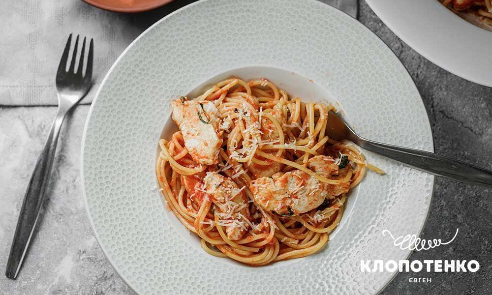 Швидка, ситна і водночас смачна вечеря — це реально, навіть після насиченого дня. Паста з куркою стане ідеальним варіантом для тих, хто не хоче довго стояти на кухні, але прагне потішити себе та рідних домашньою стравою.Відомий український шеф-кухар та ресторатор Євген Клопотенко поділився рецептом пасти з куркою. Всього 30 хвилин — і смачна страва на вечерю готова.Паста з куркоюІнгредієнти для приготування:спагеті — 200 г;куряче філе — 200 г;томати — 200 г;часник — 1 зубчик;базиліку — 10 листочків;пармезан — 40 г;оливкова олія — 1 столова ложка;біле вино — 2 столові ложки;цукор — 1 чайна ложка;сіль і перець до смаку.Процес приготування:Спагеті відварити до стану "аль-денте" (напівготовності). Після приготування воду не зливати, а залишити у каструлі.Куряче філе нарізати слайсами.На сковорідці розігріти оливкову олію та додати подрібнений зубчик часнику. Викласти курку, приправити її сіллю і перцем та обсмажити її до золотавого кольору.Додати біле вино та випарити його впродовж 30-40 секунд.Томати перебити в блендері до однорідного стану.Натерти пармезан на дрібній терці.До м'яса додати томати, дрібно посічений базилік і ретельно перемішати.До готового м'яса додати відварене спагеті, перемішати, всипати половину пармезану, і влити декілька столових ложок води, в якій варились макарони. Ще раз перемішати та готувати одну хвилину.Готову пасту розкласти по тарілках і перед подачею на стіл притрусити рештою пармезану.За бажанням прикрасити страву листочками базиліка.Нагадаємо, раніше ресторатор Євген Клопотенко поділився рецептом лаваша з тунцем, який не лише смачний, а й дуже ситнийЧитайте також: Що приготувати на сніданок: добірка смачних та швидких рецептів.
