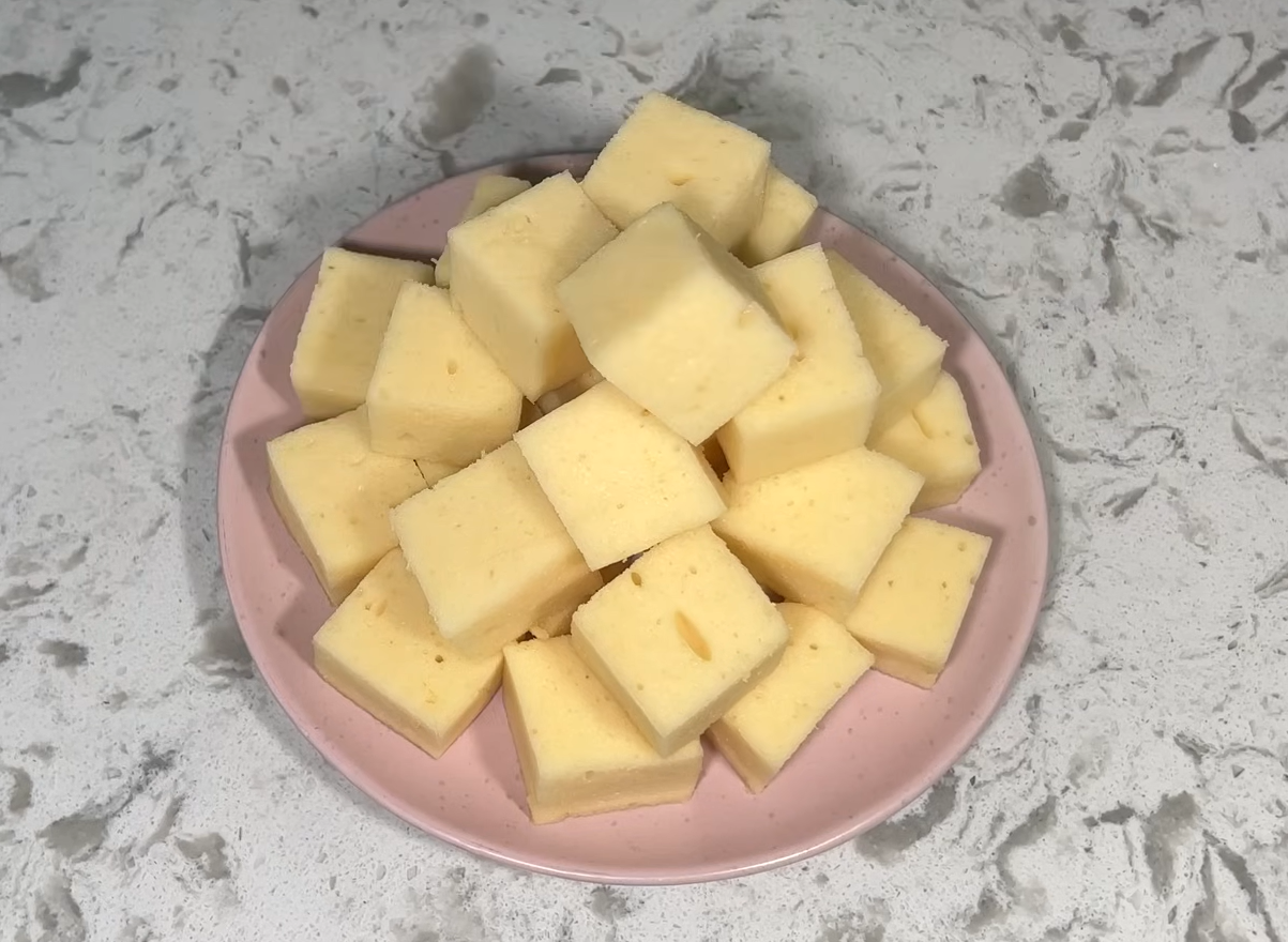 - Дістаємо десерт, нарізаємо на шматочки та смакуємо.