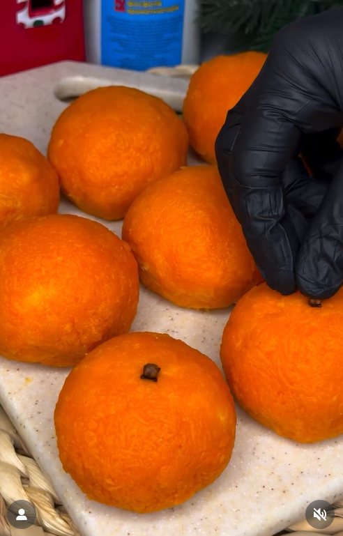 - Зверху по центру вставити гвоздику, щоб мандаринки виглядали наче справжні.