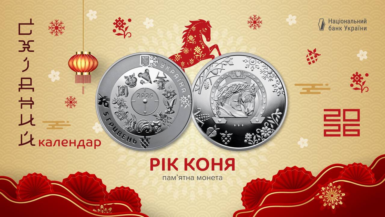 Національний банк випустив нову пам'ятну монету "Рік Коня". Вона приурочена символу 2026 року за китайською астрологією.Про це повідомила пресслужба НБУ.Дизайн монетиНа реверсі зображено стилізований символ східного календаря 2026 року – коня на тлі підкови. Під цим зображенням розміщено три крапки — символ продовження боротьби."Грива коня передає динаміку руху "за вітром" або "проти вітру" — це метафора внутрішньої сили, спротиву та прагнення до свободи", — зауважив регулятор.На аверсі по колу зображені 12 символів східного календаря, в центрі кола — стилізований годинник зі стрілкою, що вказує на головуючий у 2026 році знак китайського зодіаку. Дизайн монети створила художниця Марина Куц, скульптор — Володимир Атаманчук.Продаж монетиПам'ятна монета "Рік Коня" вводиться в обіг 3 листопада 2025 року. Її номінал 5 гривень. Тираж — 80 тисяч штук у сувенірній упаковці.Придбати пам’ятну монету "Рік Коня" можна буде в інтернет-магазині НБУ з 4 листопада. Крім того, монета реалізовуватиметься і банками-дистриб'юторами.Нагадаємо, 24 жовтня Національний банк України презентував набір з двох пам’ятних монет "Мешканці морських глибин", який продовжує серію "Флора і фауна".Додамо, українська пам’ятна монета "Країна супергероїв. Дякуємо медикам!" здобула перемогу в номінації "Монета, що найбільше надихає". Вона увійшла до десяти найкращих монет світу за підсумками міжнародного конкурсу "Монета року"..