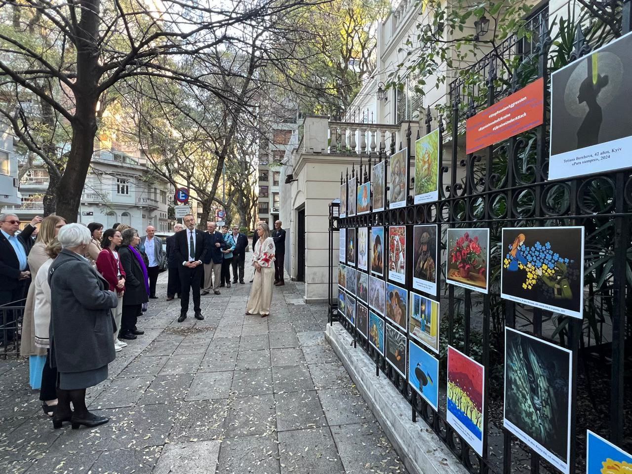 У столиці Аргентини Буенос-Айресі проходить виставка "Покоління війни". Експозиція відкрилася 12 вересня у Посольстві України в Аргентині, у межах заходів з відзначення Дня Незалежності нашої держави. На виставці представлені роботи переможців Міжнародного художнього фестивалю Малюй.ua, учасників артмарафону "Покоління війни" — художників з різних куточків України, від дітей до людей похилого віку, як цивільних, так і військових. Виставку відкрив надзвичайний і повноважний посол України в Аргентинській Республіці Юрій Клименко.Експозиція розташована біля посольства України в Аргентині просто неба безстроково і доступна для щоденного огляду як відвідувачам посольства, так і мешканцям та гостям одного з престижних районів Буенос-Айреса, де розташована низка інших дипломатичних установ.Організатори виставки: Асоціація з розвитку міжнародних відносин Adrum і посольство України в Аргентинській Республіці."Це друга виставка, яку ми проводимо разом з Посольством України в Аргентині, — розповідає президент Асоціації з розвитку міжнародних відносин Adrum Тетяна Колесніченко. — Торік ми організували велику виставку у Національному музеї Casa Nacional del Bicentenario в столиці Аргентині Буенос-Айресі за участю 78 робіт, яка тривала понад місяць — з 4 листопада по 8 грудня й увійшла до програми "Ночі в музеї". В цьому році виставка розташована у вільному доступі прямо біля посольства, що надає можливість побачити роботи українських митців ще більшої кількості людей. Я дуже вдячна посольству й особисто пані Марині Панченко за співпрацю, сподіваюся на подальші вдалі проекти".